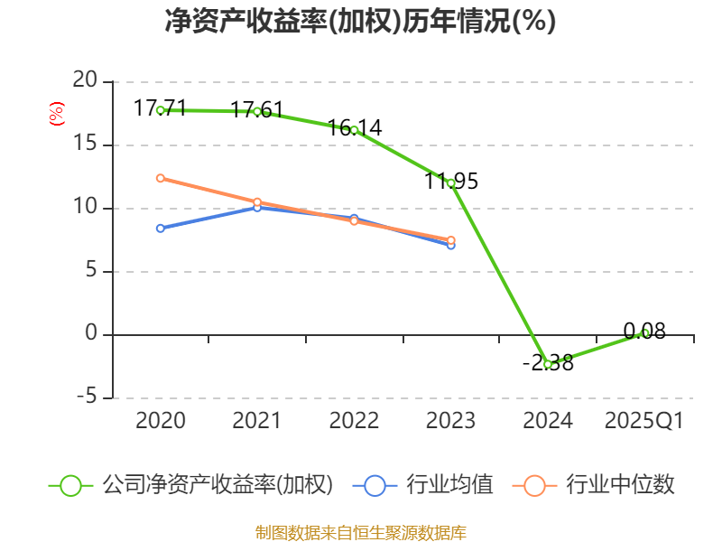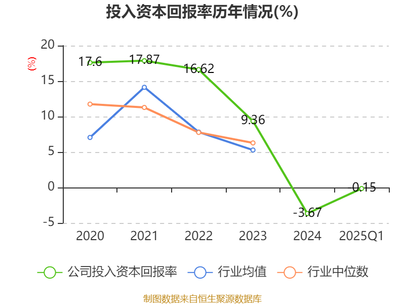 盈利能力方面, 2025年一季度公司加权平均净资产收益率为0.08%,同比下降0.59个百分点。公司2025年第一季度投入资本回报率为-0.15%,较上年同期下降0.67个百分点。