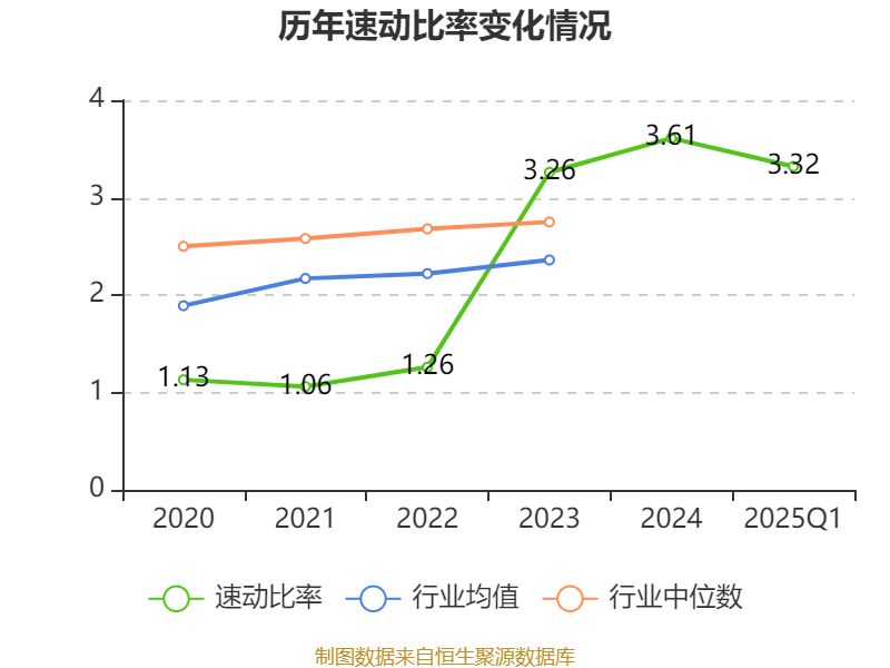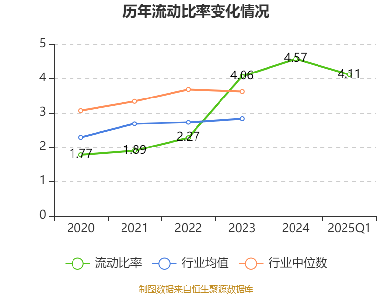 2025年第一季度,公司流动比率为4.11,速动比率为3.32。
