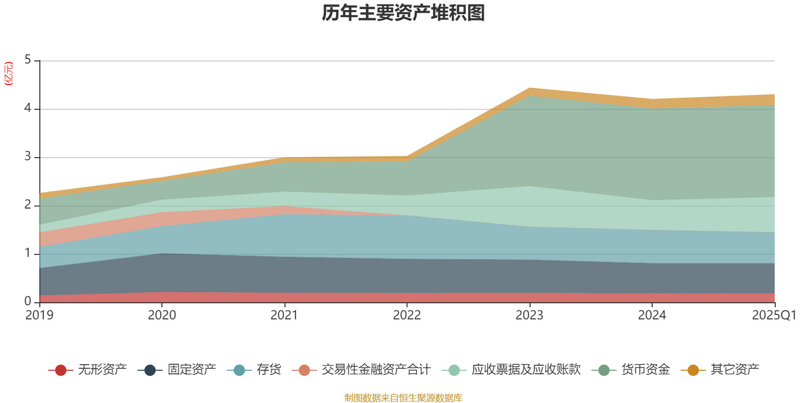 资产重大变化方面,截至2025年一季度末,公司应收票据及应收账款较上年末增加18.34%,占公司总资产比重上升2.3个百分点;存货较上年末减少6.7%,占公司总资产比重下降1.44个百分点;货币资金较上年末增加0.24%,占公司总资产比重下降0.91个百分点;在建工程合计较上年末增加126.91%,占公司总资产比重上升0.87个百分点。
