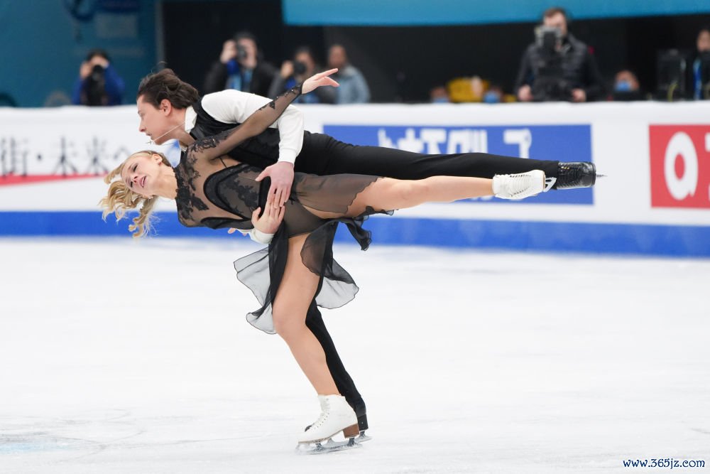 1月23日,美国组合津加斯(下)/科列斯尼克在冰舞自由舞比赛中。新华社记者 谢晗 摄