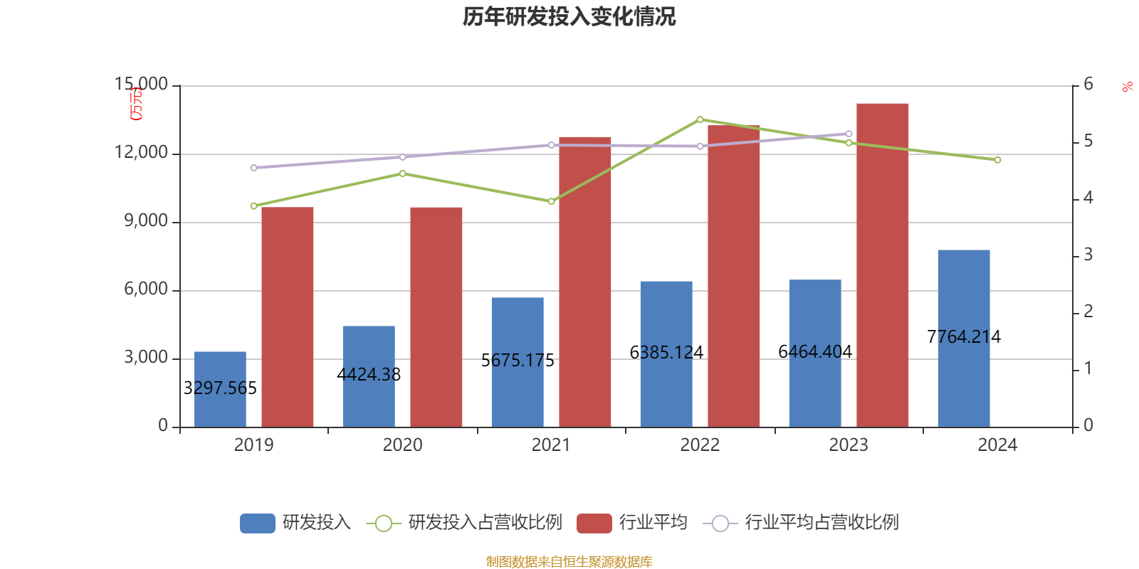 2024年全年盈亚配资,公司研发投入金额为7764.21万元,同比增长20.11%;研发投入占营业收入比例为4.69%,相比上年同期下降0.3个百分点。此外,公司全年研发投入资本化率为0%。