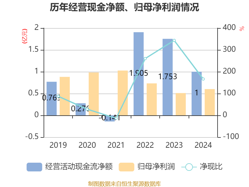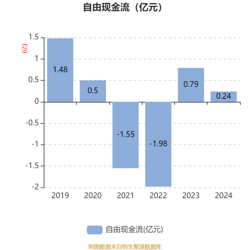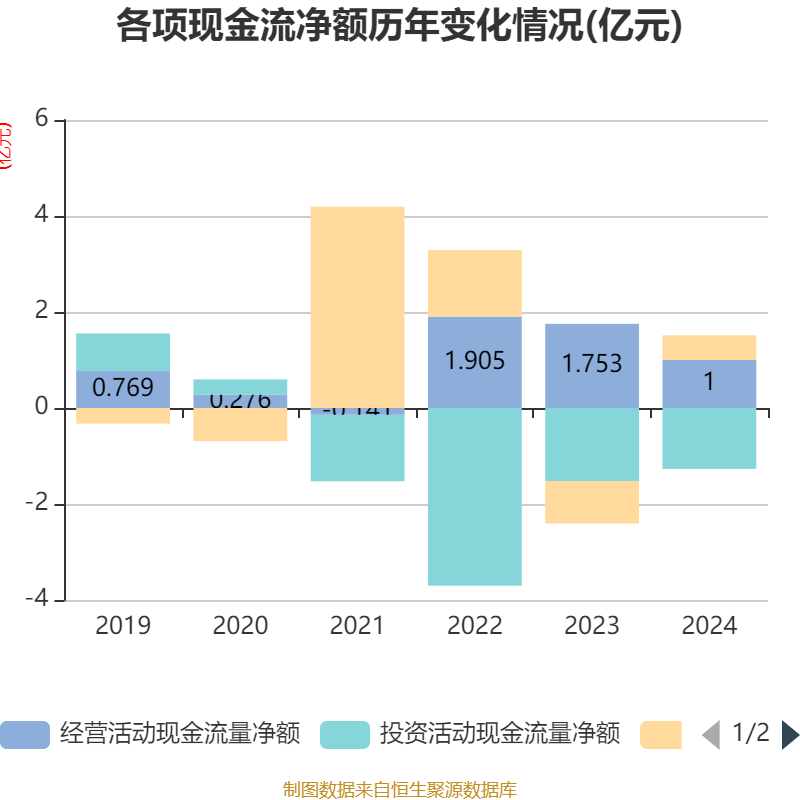 截至2024年,公司经营活动现金流净额为9997.72万元,同比下降42.96%;筹资活动现金流净额5127.92万元,同比增加1.4亿元;投资活动现金流净额-1.27亿元,上年同期为-1.52亿元。